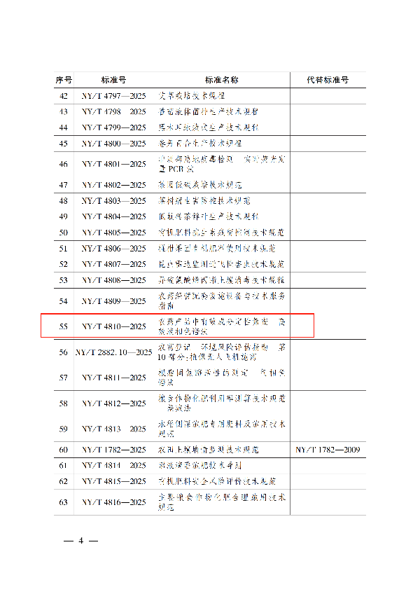 本网讯:近日,农业农村部官网发布农业农村部第976号公告,河北省农药检定监测总站作为第一完成单位,主持完成《农药产品中有效成分定性筛查 高效液相色谱法》农业行业标准(标准号NY/T 4810—2025),将于2026年5月1日起实施。