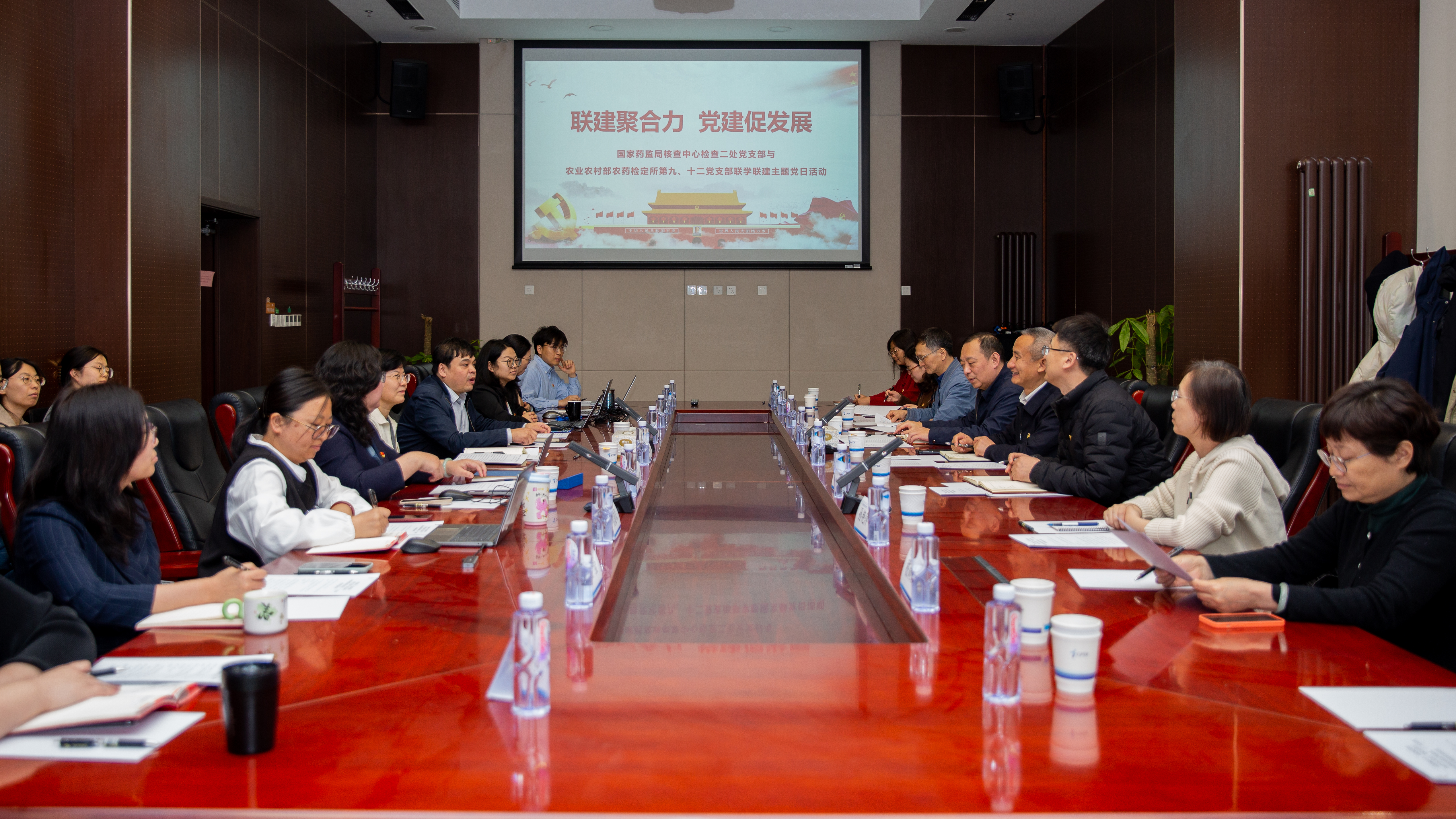 本网讯:为深入贯彻落实习近平总书记关于食品药品安全工作的重要指示批示精神,树立和践行正确政绩观,谋划“十五五”时期农药登记试验单位体系建设,推动我国农药行业高质量发展,农业农村部农药检定所第九、十二党支部与国家药品监督管理局食品药品审核查验中心(以下简称核查中心)第二党支部于2026年2月27日联合举办了“联建聚合力、党建促发展”主题党日活动。农药检定所党委书记、所长黄修柱同志,党委委员、副所长宗伏霖同志,核查中心党委书记、主任李芳同志,党委委员、副主任崔浩同志以及双方党员与技术骨干30余人参加活动。